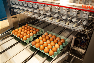 The packers position the eggs correctly, with the thinner end facing down, gently, avoiding unwanted cracks.