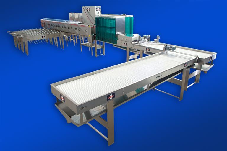 Tiene la capacidad de ordenar hasta 54.000 huevos por hora. La clasificación de los huevos se basa en el pesaje electrónico, realizado con celdas de carga de alta precisión. Este modelo ha sido diseñado para funcionar sin lavadora. La limpieza de huevos es fundamental. en seco, mediante una pulidora con cerdas suaves de nailon.